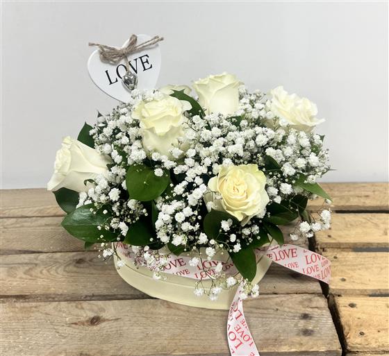 6 White Rose Heart Hat Box