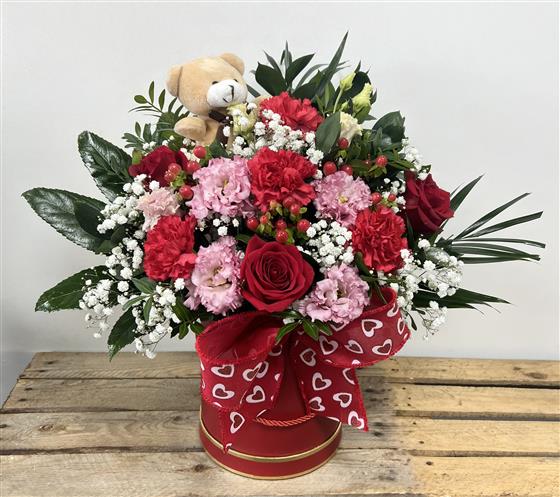 Red valentines hat box including