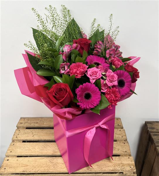 Red and cerise bouquet including